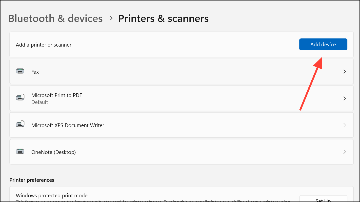 Step 2: Select Add device on the Printers and Scanners page.