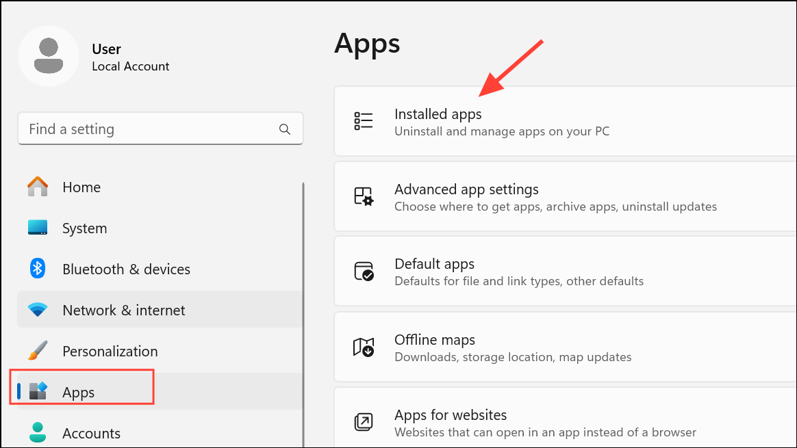- Open Settings → Apps → Installed apps.