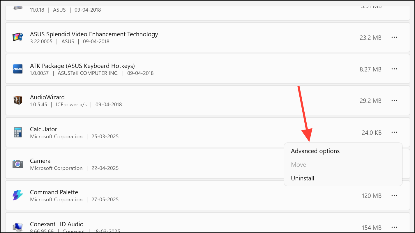 - Click the three dots next to any Store app and select Advanced options.