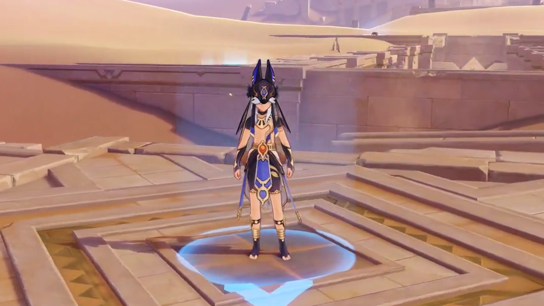Step 4: In the second phase, tilt the camera slightly upward, making sure both Cyno and his weapon follow the angles of the silhouette.