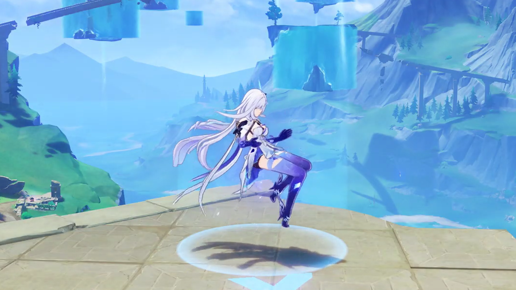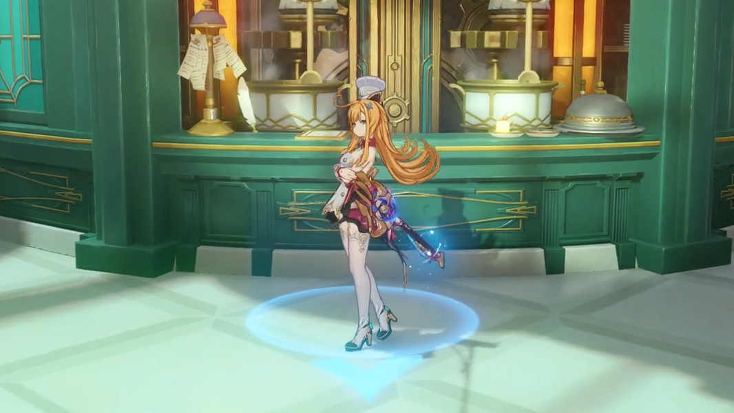 Step 2: Use a Charged Attack and let the full animation play out. At the end, her weapon vanishes, and one hand lifts gracefully.