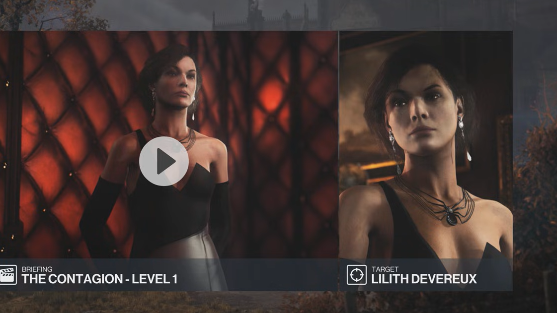 The Contagion arcade contract draws from the broader Patient Zero Requiem storyline, which casts Milla Jovovich as Lilith Devo. In the narrative, Devo is the daughter of Oybec Nabazoff, the leader of a doomsday cult that Agent 47 previously dismantled in Thailand. She has infiltrated Ether Corporation and risen to CEO with the backing of Gregory Carlile, who owns the Carlile estate where the Dartmoor mission takes place.