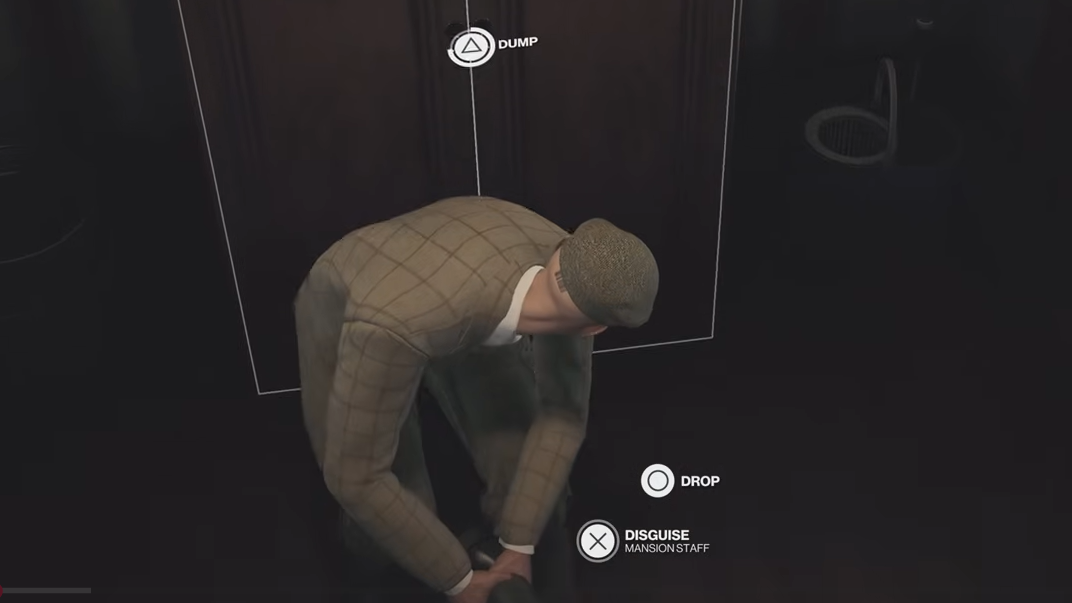 Step 3: Equip the crowbar, exit the closet once the staff member enters, and knock him out. Stash his body in the closet and take his disguise. This outfit gives you enough access to move through the manor's ground floor.