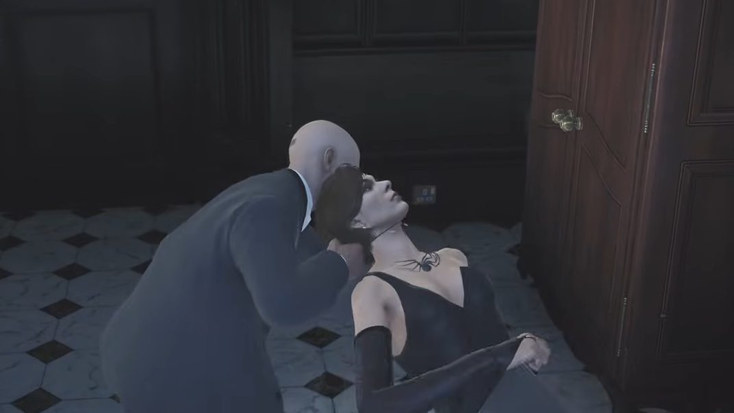 Step 7: Once Devo drinks the poisoned whiskey, she'll clutch her stomach and head to the downstairs bathroom. Follow her there. You have two clean options for the kill. Drowning her counts as an accident kill, meaning you can leave the body where it falls with no penalty. Alternatively, using the fiber wire is faster, but you must hide the body in the bathroom afterward — guards will eventually patrol through and discover it otherwise.