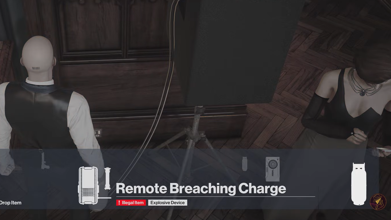Step 1: Set your starting location to the staff room and choose the mansion guard disguise. In your loadout, bring the Kalmer tranquilizer and a breach charge. No other items are necessary.