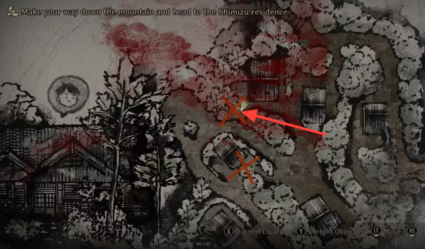 Step 2: Enter the now‑open home parallel to Shimizu residence and follow the treasure chest notes to the downstairs airing cupboard to collect the Faded Bride Doll. Place this at the statue.