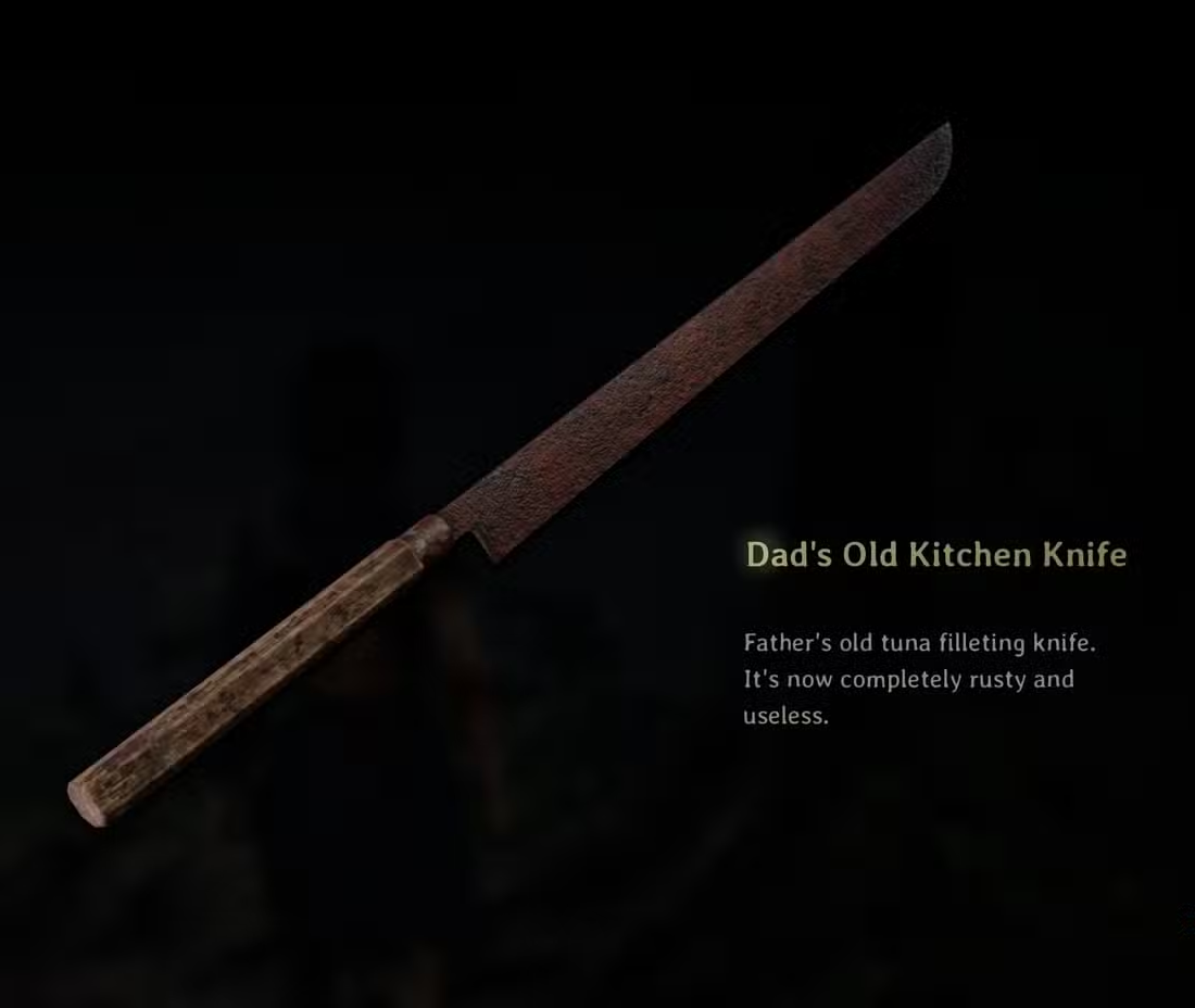 | Metal. | Make your way down the mountain and head to the Shimizu residence. | Behind a home above a stairwell; use the nearby lamppost as a landmark. | Dad’s Old Kitchen Knife. | Stabbed into a tree directly east/opposite of the statue. |