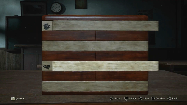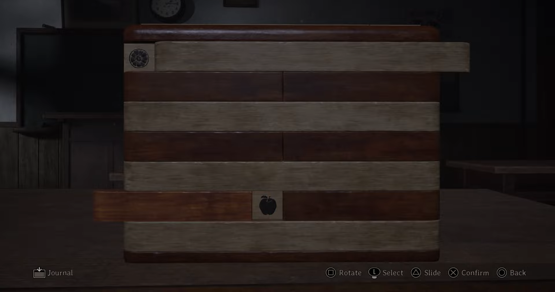 The Secret Box puzzle in Silent Hill f sits on the second floor of Ebisugaoka Middle School and gates your exit from a classroom. After you’ve gained access to 2F, you’ll find a large wooden box made of three nested layers. Each layer opens only when the sliding tiles on its faces display a precise set of engravings. The clues aren’t on the box—they’re in Rinko’s letters. Read the highlighted phrases (on Story difficulty) or parse the text yourself (on Hard and Lost in the Fog), then reveal only the images the letter describes.