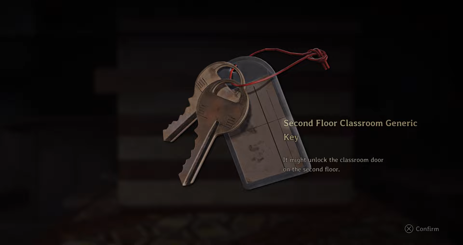 You encounter the Secret Box once you’re exploring the second floor classrooms. Solving all three layers unlocks the classroom doors and awards the 2F Classroom Generic Key, letting you continue through the school. A short window-side cutscene plays when you finish the puzzle, after which the door opens and you can move on to the next major puzzle.