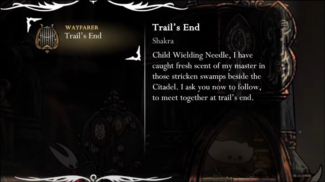 Silksong ties its true endgame to town-building and a moving refugee camp. If you skip detours, the board dries up, the Caretaker has nothing new to offer, and the caravan won’t budge. The triggers are also layered: Shakra’s maps gate Trail’s End, the Sentinel needs two free-roam encounters before Final Audience appears, and the caravan won’t move to a place you haven’t personally scouted. That mix makes it easy to be “one task short.”