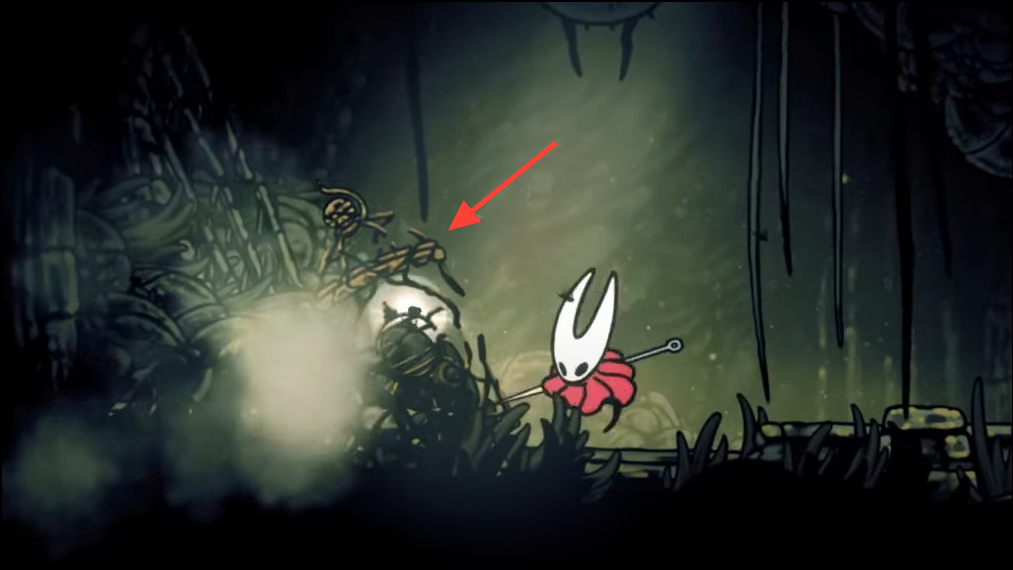 Step 2: Move left into the spike-lined vertical corridor and climb carefully using double jump and wall clings. Use Clawline tethers to cross wider gaps or avoid ranged pests.