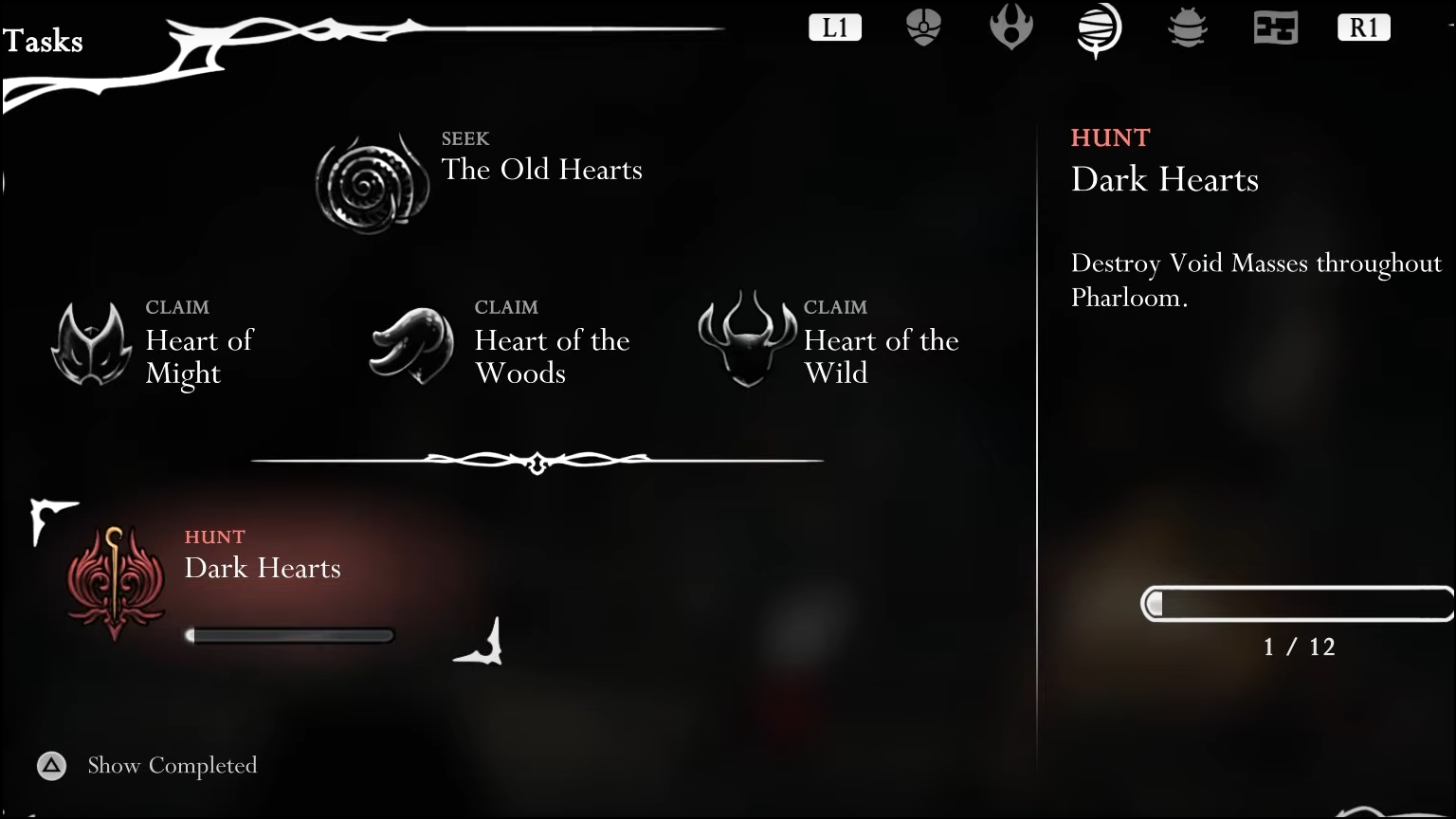 The Dark Hearts wish in Hollow Knight: Silksong appears in Act 3 and tasks you with destroying 12 Void Masses scattered across Pharloom. There are far more than 12 in the world (dozens overall), so the quickest approach is to clear dense clusters near Bellhart and turn the wish in for a Mask Shard. The notes below focus on a fast route, reliable tells to locate Void Masses, and safe ways to remove them.