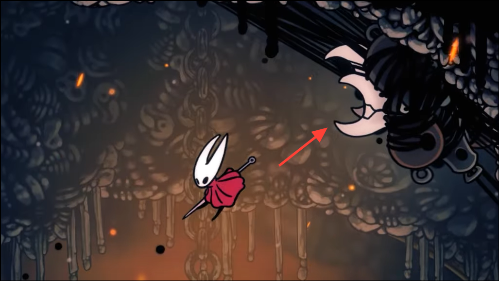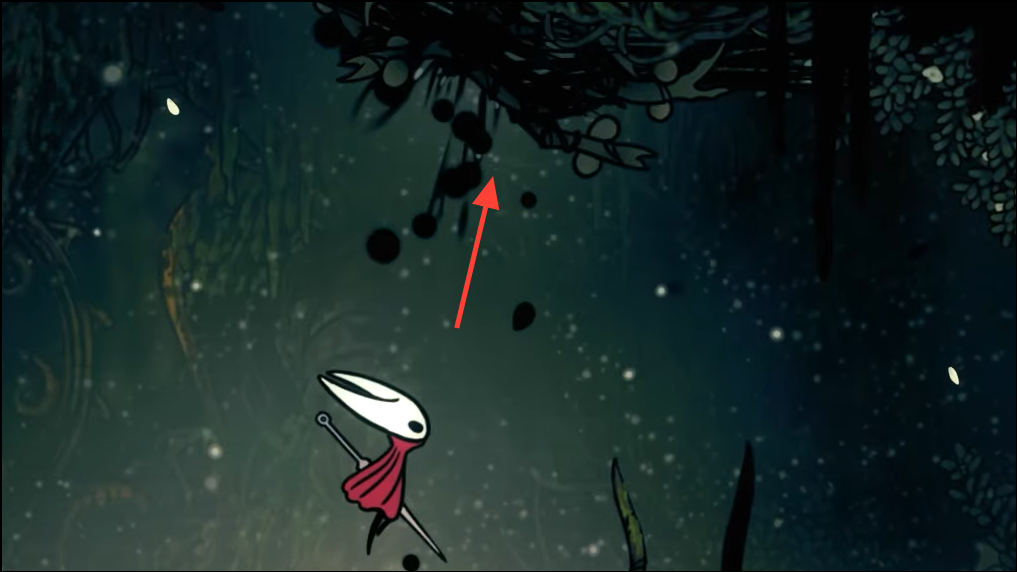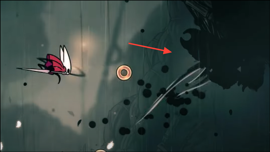 Step 3: Move toward Bone Bottom and reach the horizontal chamber close to its bench. Hit the Void Mass clinging to the ceiling of that room.