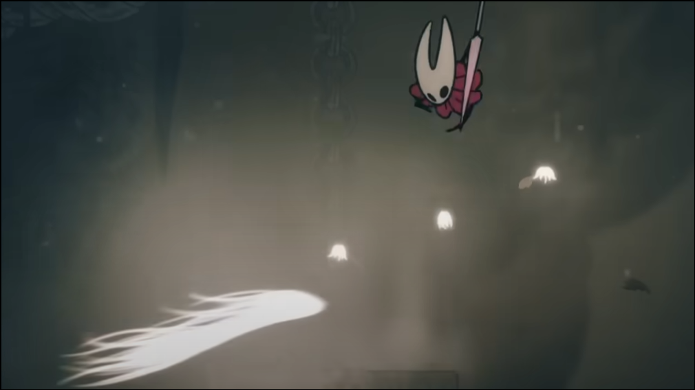 Step 4: Deal with ghost pursuers by jumping over their rush and pogoing with a downward strike. They drain silk on contact, so keep space and prioritize clean hits.