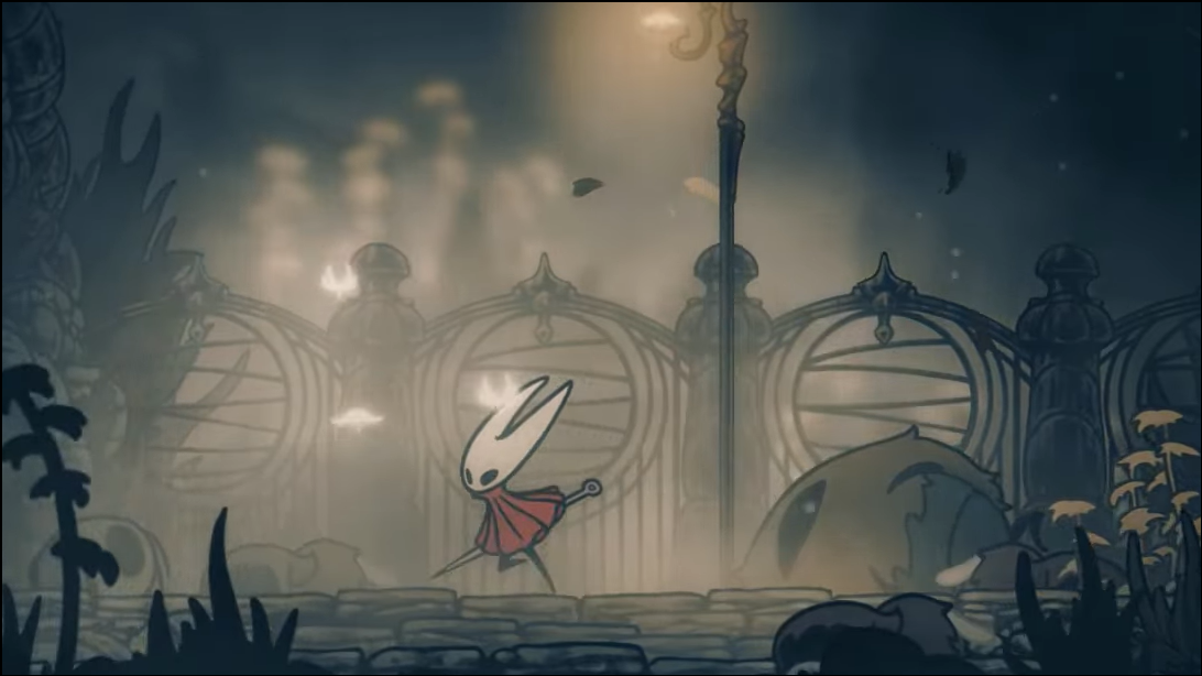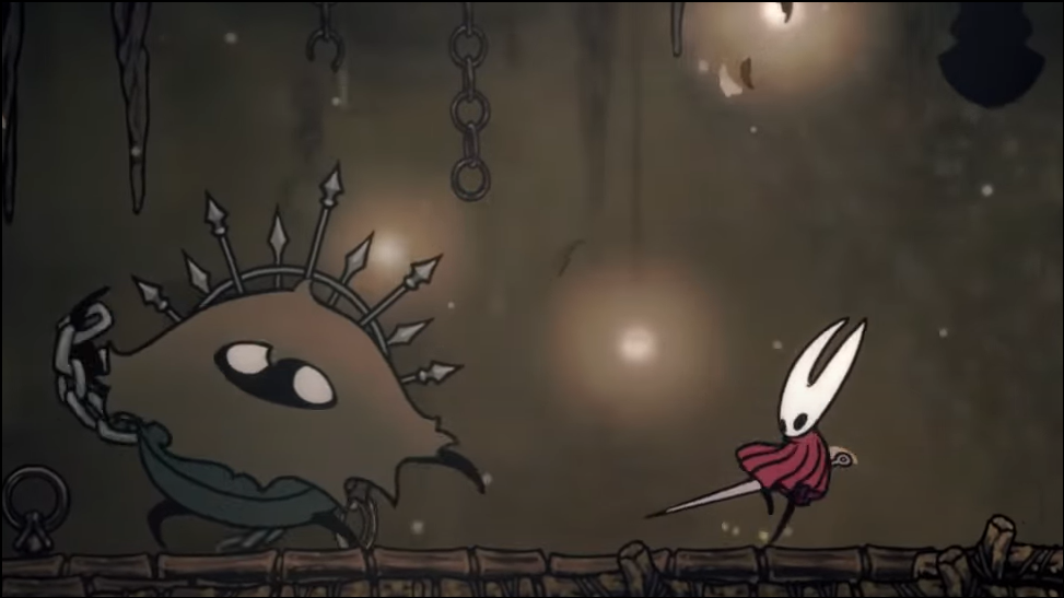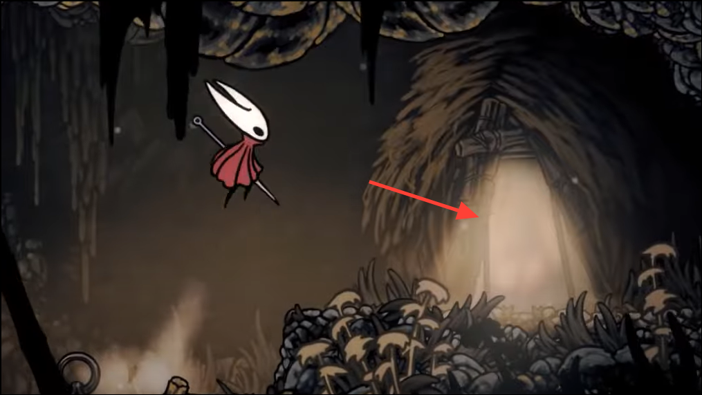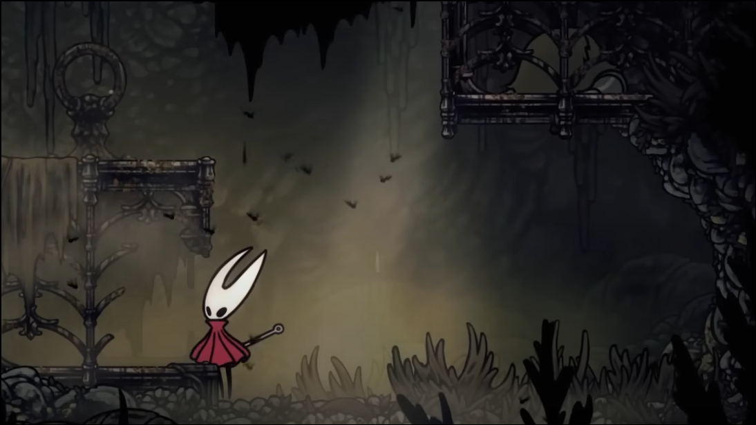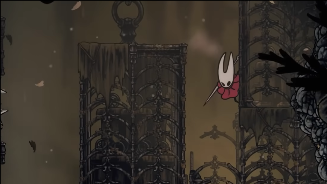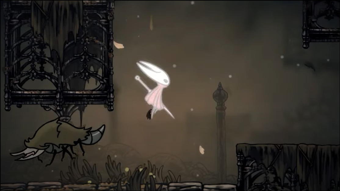 Step 2: Continue to the top and head right into a long, hazardous corridor patrolled by Roachkeepers and pendulums. You can fight or bypass them by pogoing over pendulums at the platform edges.