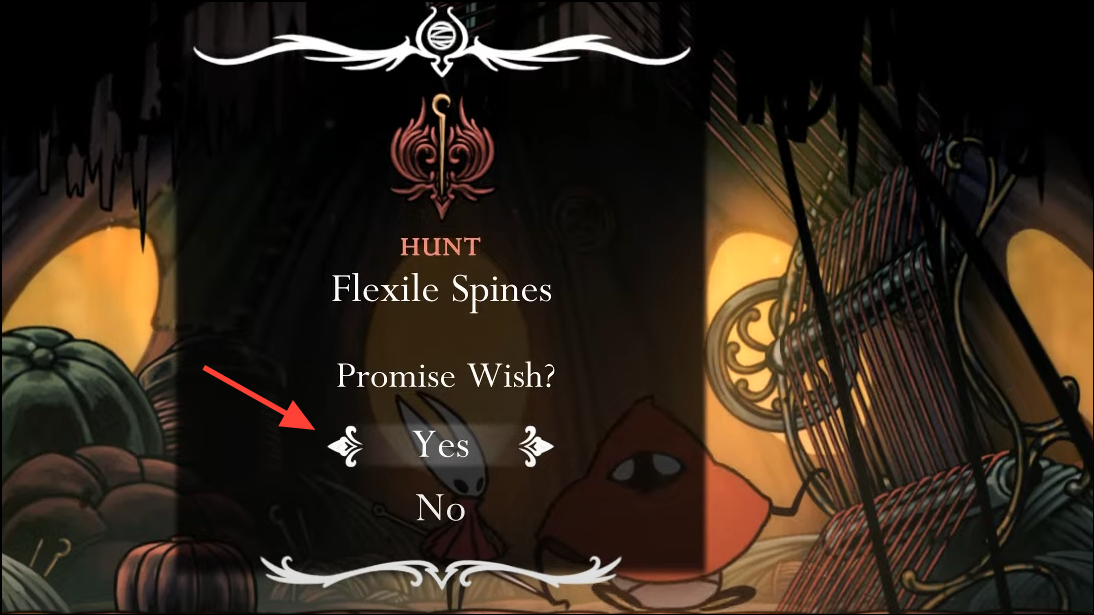 From the mid-right exit of the shaft, cross a lava field into a cavern dominated by a balloon-like hut. Inside is the Seamstress, who offers the Flexile Spines wish: bring her 25 Spine Cores to refit your cloak.