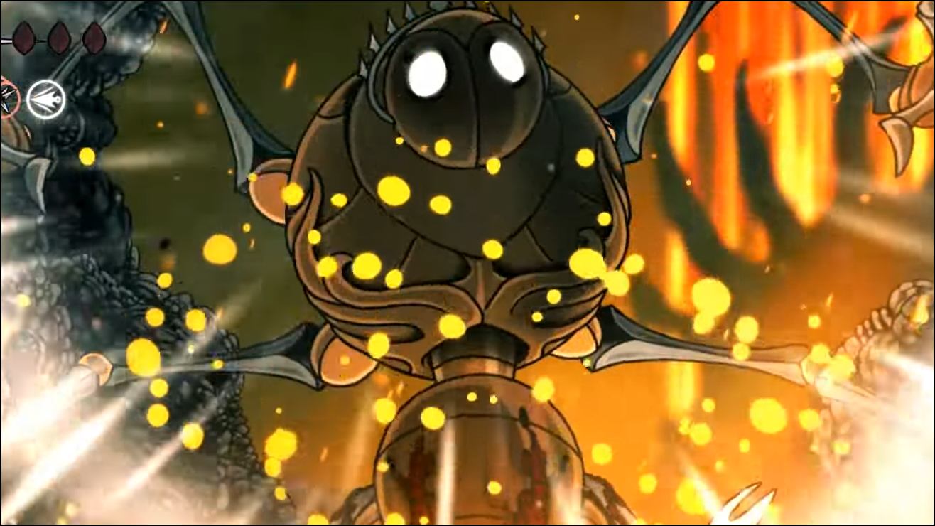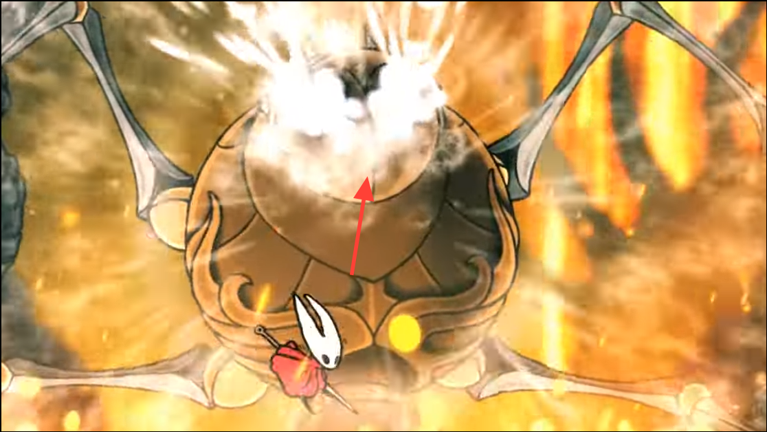 - Final phase: ride the two vents that open on either side to break orange growths in the ceiling. The falling boulders crush the boss.