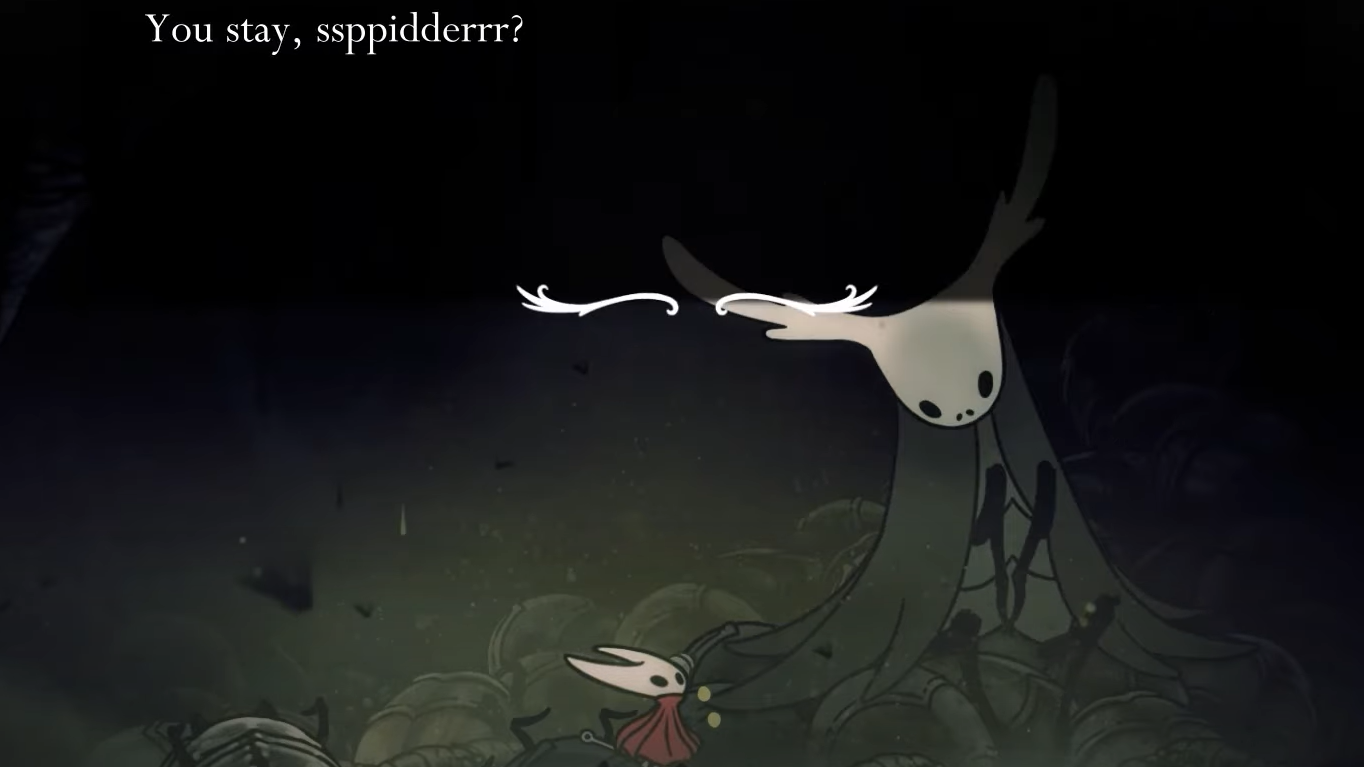 The Huntress was first teased years before release through community riddles, appearing under the name “Styx.” In the game, she reads as a thematic foil to the Hunter from Hollow Knight — obsessed with prey and progeny, but ultimately an NPC anchored by a single, demanding quest.