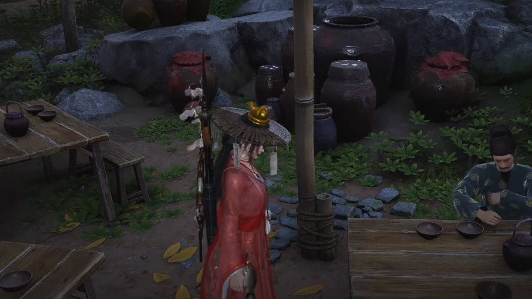 Step 2: Look behind the stand for two NPCs sitting at a table and speak with Merchant Liu to trigger the tale.