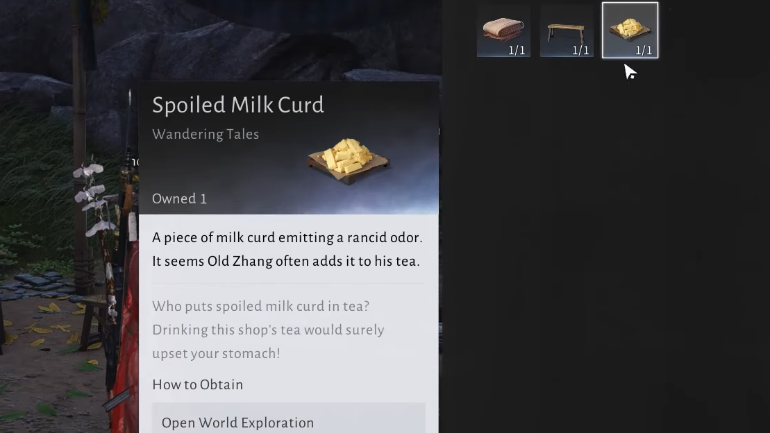 Step 3: Go to the stand itself and take the Spoiled Milk Curd from the table area.