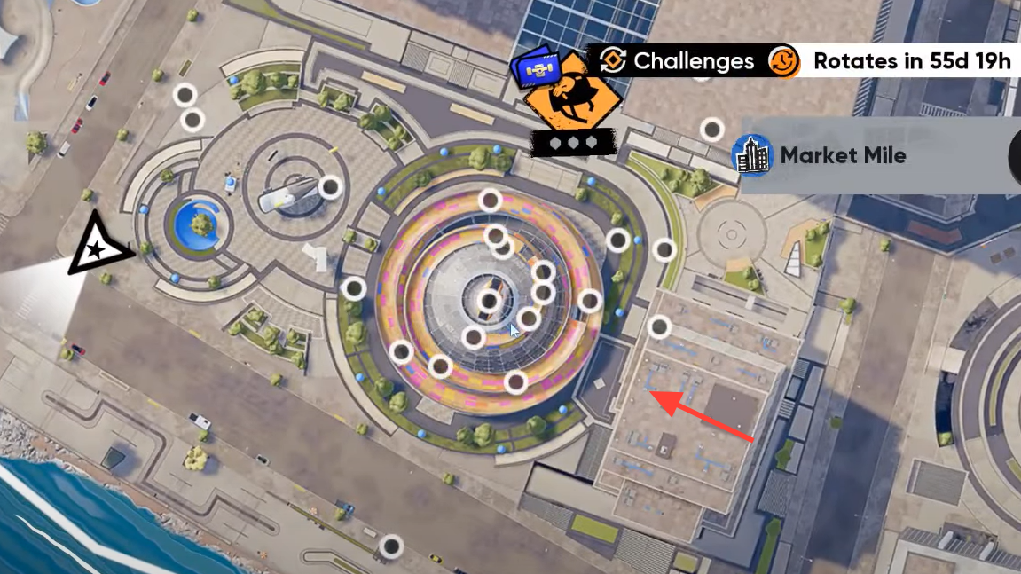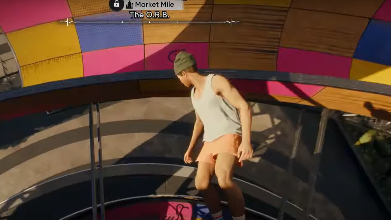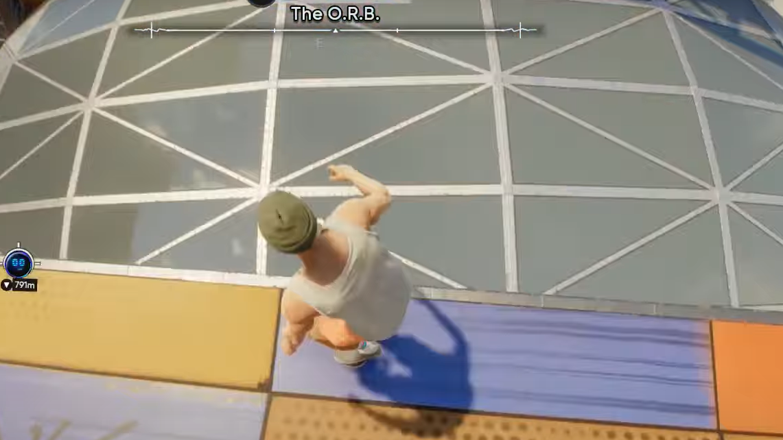 The O.R.B. sits in the Market Mile region of San Van. It doesn’t appear as a named marker on the map, so look for a large, round plaza made of light orange, multicolored tiles. From a broader view, it stands out as a circular structure just east of the San Vansterdam City Council. You can travel there even if Market Mile hasn’t been unlocked in the story yet.