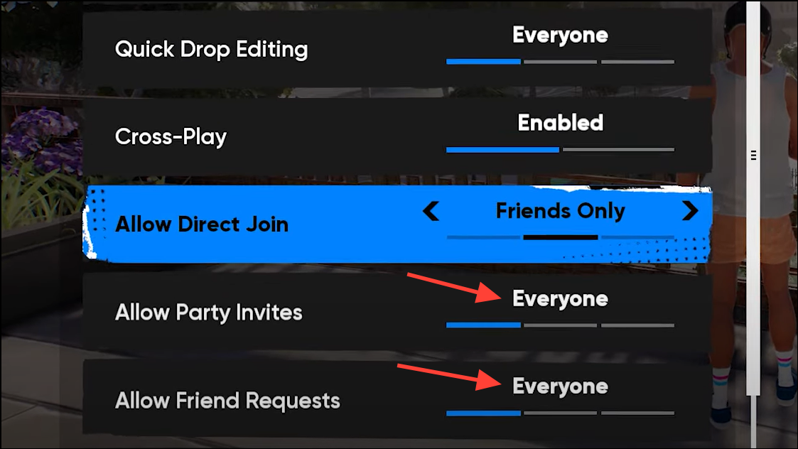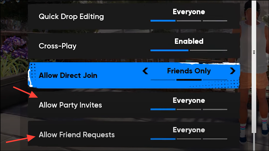 Step 3: Select Allow Party Invites or Allow Friend Requests. Choose the control you want to adjust first.