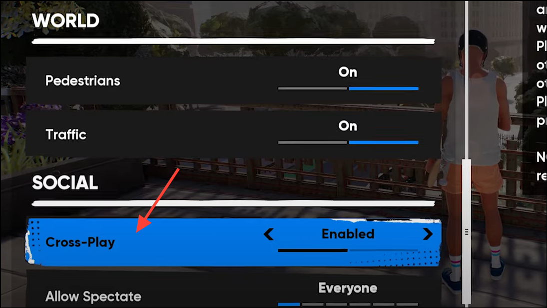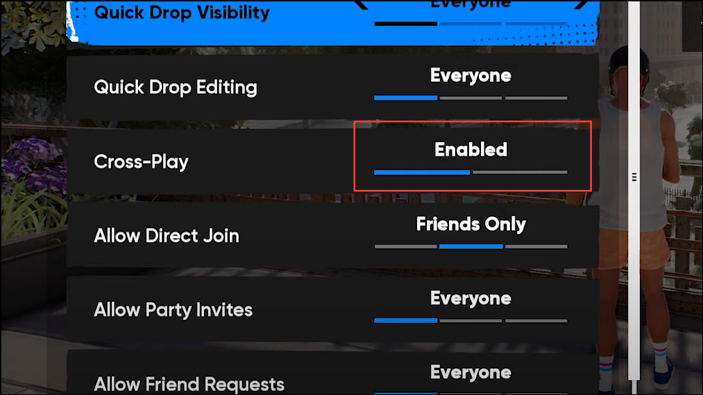 Step 4: Scroll to Cross‑Play. The toggle determines whether your game connects across networks.