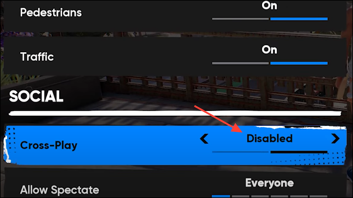 Step 5: Switch the toggle to Disabled or Enabled. Disabling restricts matchmaking and friend sessions to your platform only; enabling restores cross‑network play.