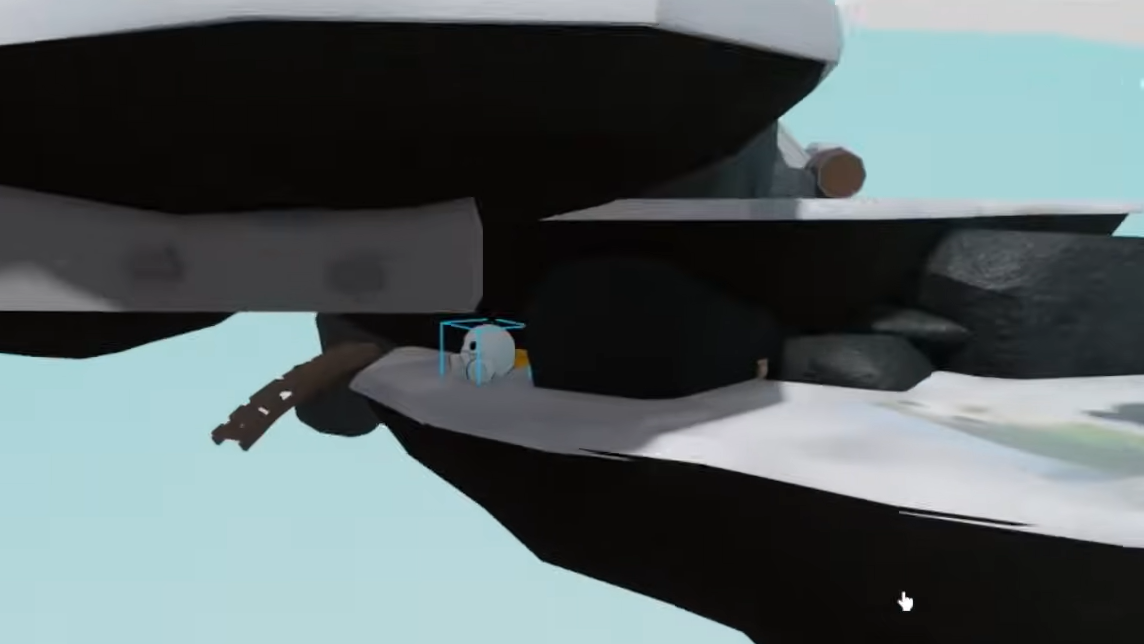 Step 2: Move to the rear of the island and drop or glide down to a ledge underneath it. A Snow Peep sits under that overhang, below the main surface.
