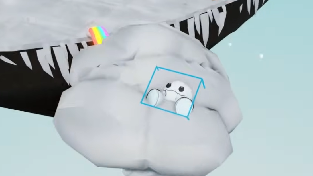Step 2: Above and slightly offset from The Fort is a single cloud platform. Reach it using the rainbow-like ramp or a high-mobility glove. The Snow Peep sits on top of this cloud.