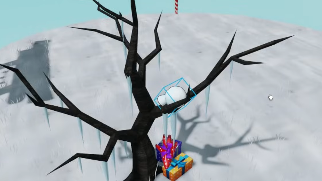 Near the cherry blossom tree and “Cube of Death” hazard, a Snow Peep hides underneath a ledge.