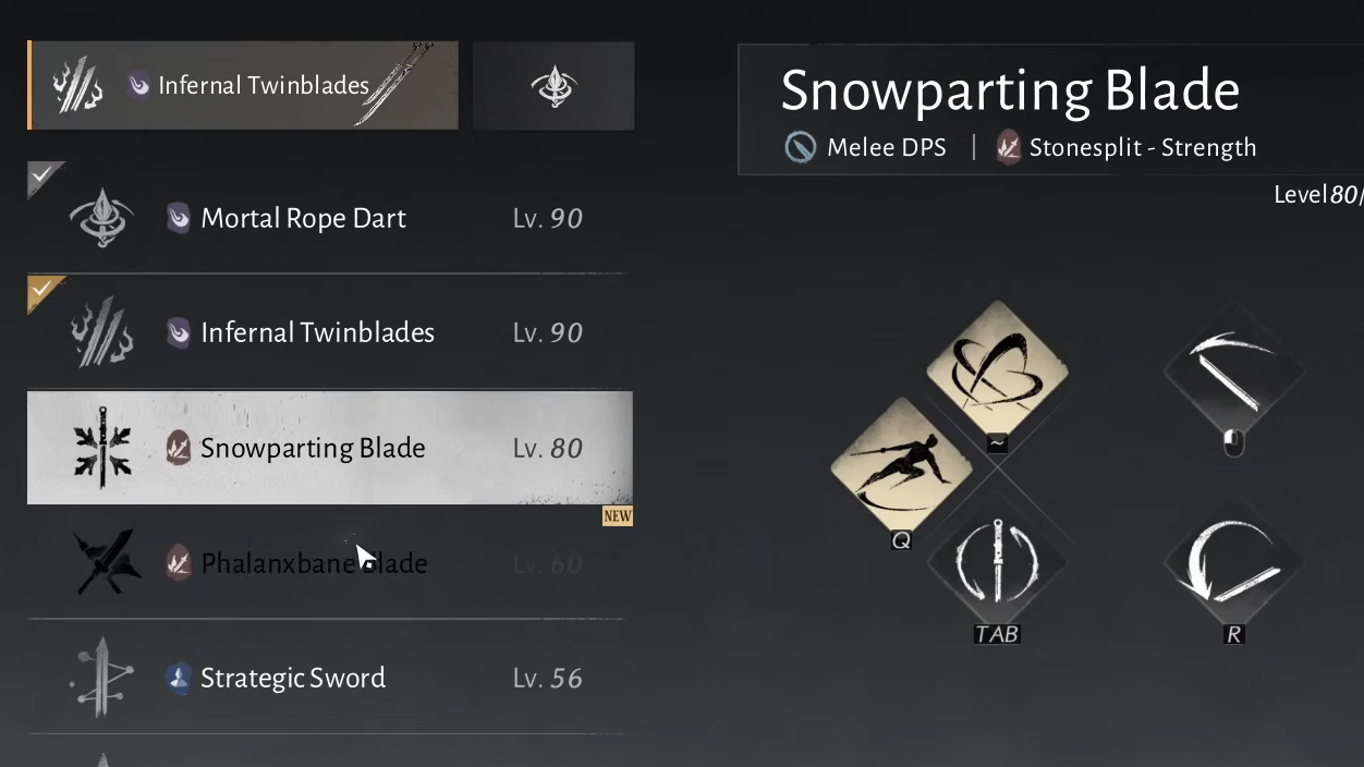 A common point of confusion is seeing the Snowparting Blade in your inventory but being unable to use it. The error message on the right side of the equipment screen reads "no matching weapon found." This is not a physical-attack stat gate or a level requirement. The Heng Blade is an entirely new weapon class introduced alongside the Snowparting Blade, and your character needs at least one piece of Heng Blade gear equipped to access the martial path. If you have been running a different weapon type up to this point, you simply will not have one yet.