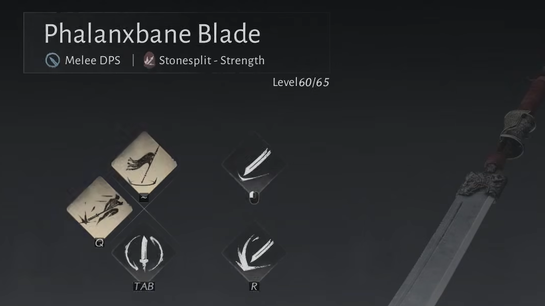 The Snowparting Blade pairs naturally with the Phalanxbane Blade as a secondary weapon. Together, these two weapons support at least three distinct build philosophies depending on how you allocate your Inner Ways.