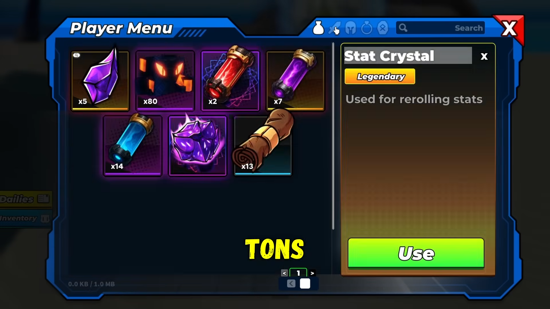 | Power Break portals | Powercell Tier 1, Tier 2, Tier 3, Basic Scroll, Epic Scroll, Legendary Scroll, Mythic Scroll, Stat Crystal, Perfect Stat Cube. |