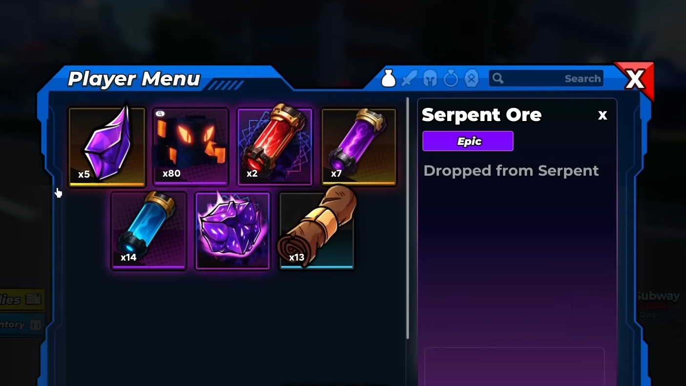 | Boss chests (any gate) | Gems (chance), Serpent Ore, Powercell Tier 1, Tier 2, Tier 3, Basic Scroll, Epic Scroll, Legendary Scroll. |