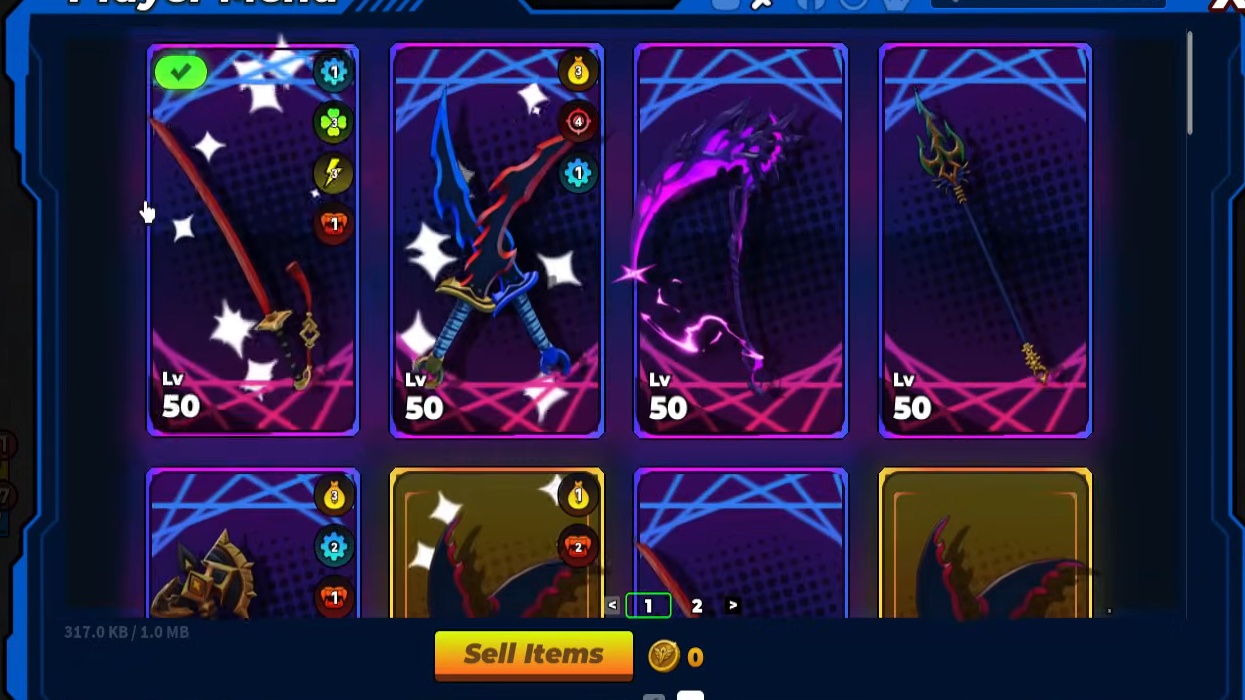 - Weapon: Fast, high-DPS melee options such as Shadow Scythe, Dual Dagger, or Thunder Axe.
