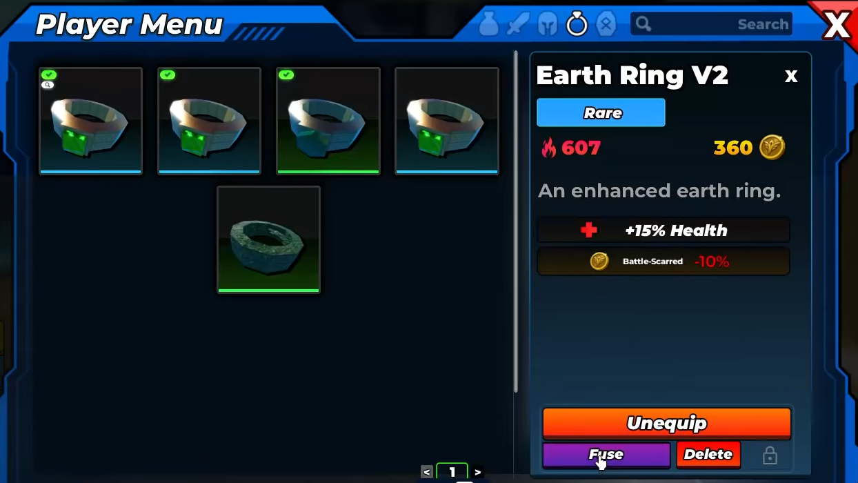 - Ring: Ability damage rings, such as Dark Heart Ring.