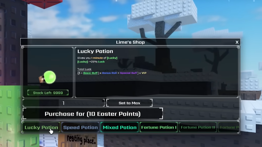 | Lucky Potion | 50 | 10% |