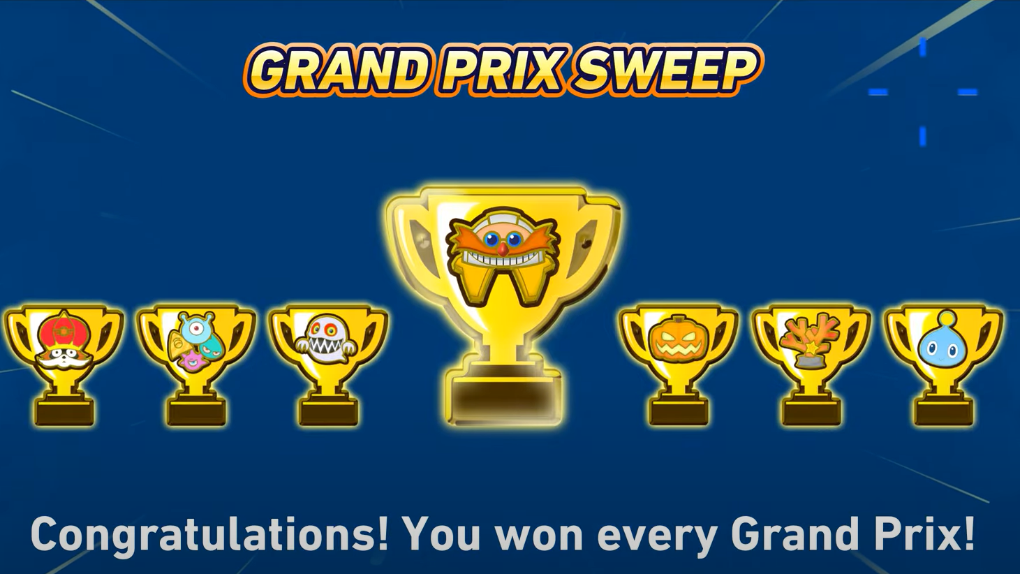 Finishing the Secret Grand Prix awards a new “Dark Sage” character skin and triggers a special credits sequence featuring a retrospective medley and imagery from past Sonic titles.