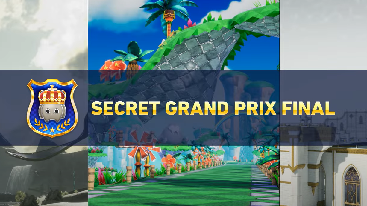 Like the other circuits, the Secret Grand Prix consists of three standard races and a fourth medley race that stitches all three tracks into one final. The CrossWorlds mechanic modifies the second lap of the first three races, so plan your lines with that shift in mind.