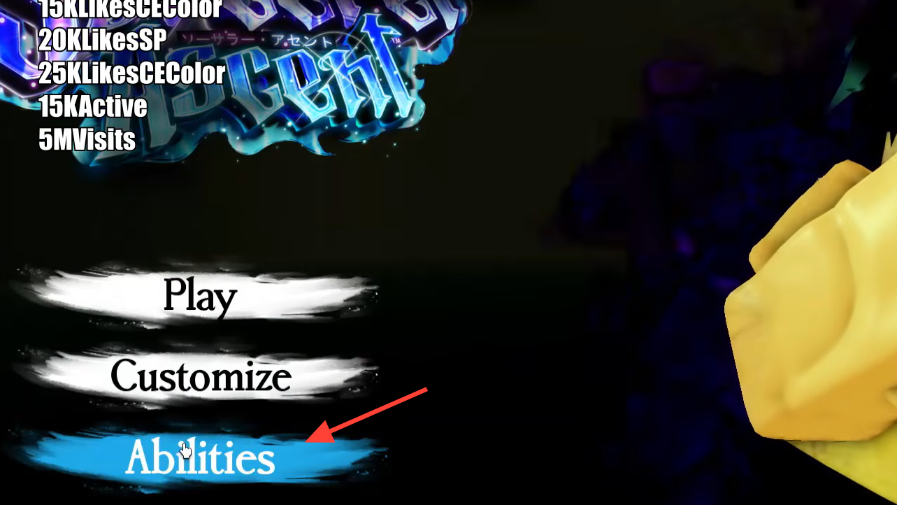 Step 3: Open the main menu and click the Abilities button. The code entry field appears at the top of the screen, directly below your Soul Points counter.