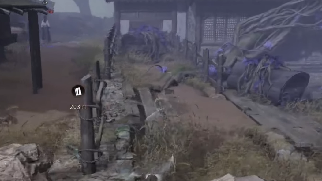 Step 2: At the station entrance, go into the house on the left and climb inside from the lower level up to the roof. This puts you above many patrol routes.