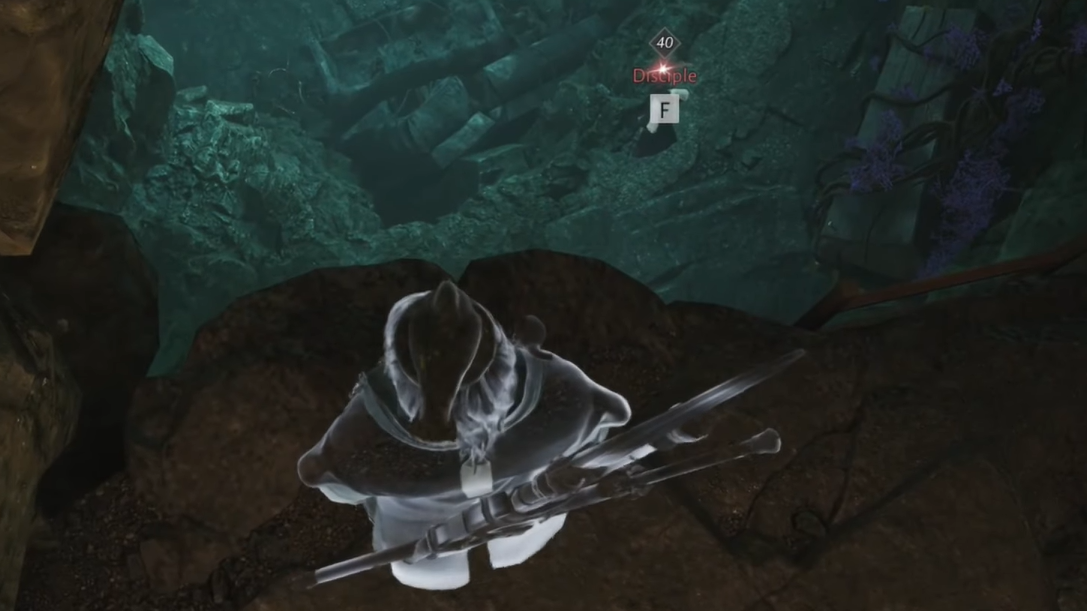 Step 7: Follow the stairs to the lower floor and eliminate the disciple guarding that level. In the same room, interact with the coffin hiding a ladder and use it to descend into the underground area.