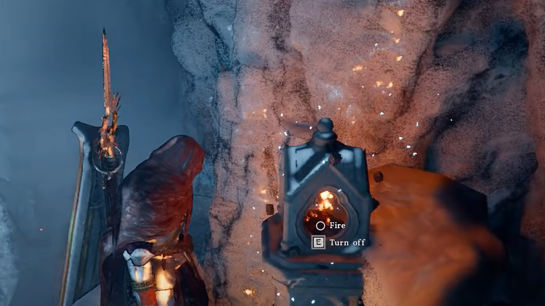 Lantern 4: Continue ascending the interior staircase. The fourth lantern is located on one of the upper floors inside the tower. Melt the ice and light it.