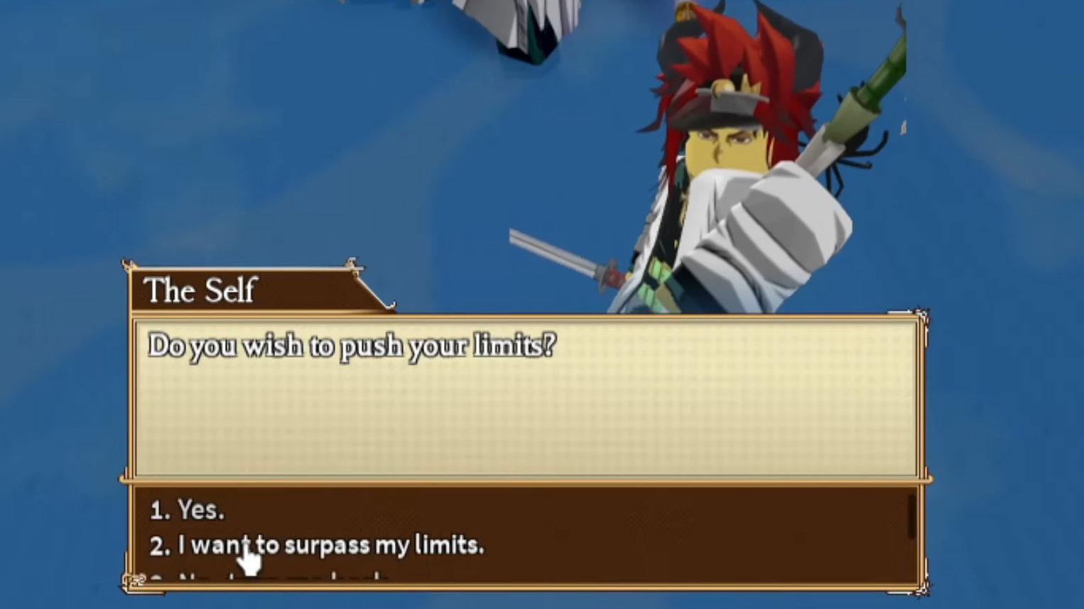 Step 3: Find the Self NPC inside the meditation realm. Talk to him and choose the dialogue option "I want to surpass my limits." The NPC will respond with "Defeat those with true power," and the Stand Awakening 1 quest begins.