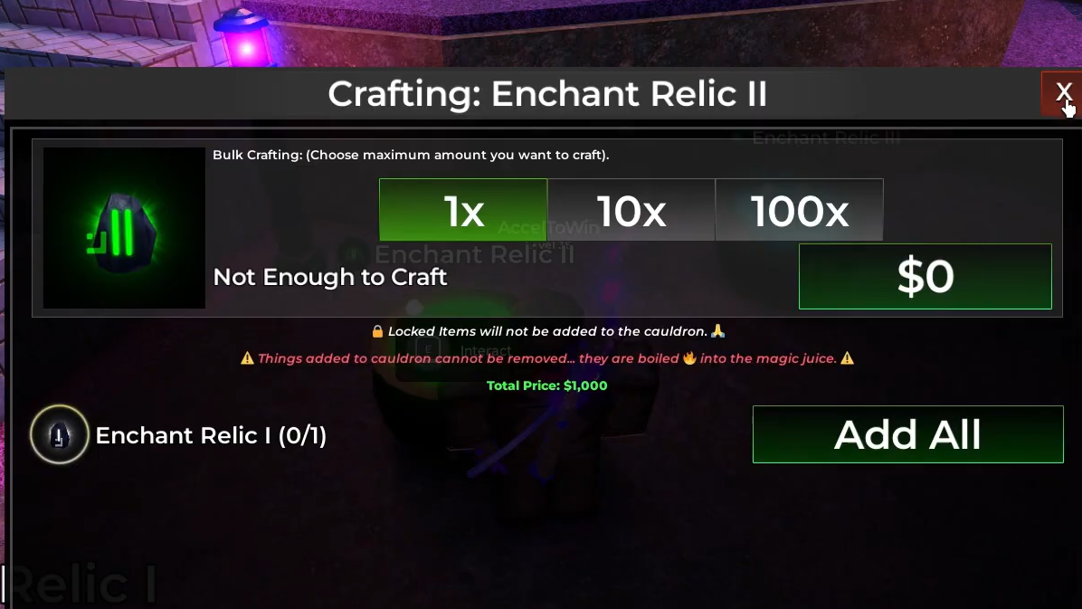 | Enchanted Relic II | $1,000 | 1x Enchant Relic I |