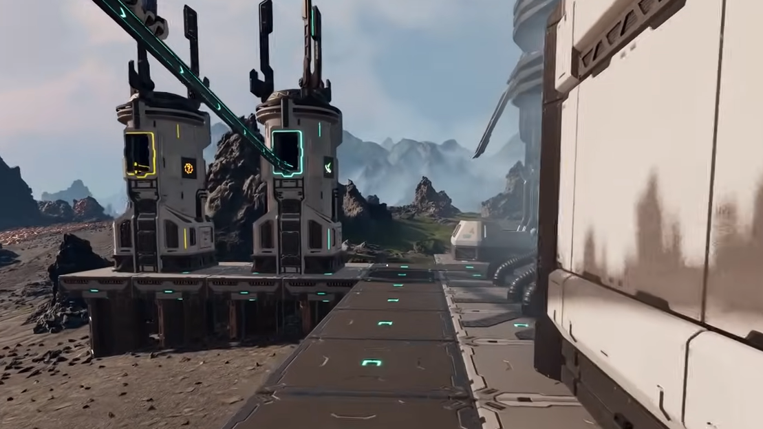 The extendable walkways that auto‑curve between platforms share power and act as rails, so you can fan production out instead of cramming everything into a tiny square. A wider, lower‑density layout is easier to navigate, easier to debug, and leaves clear lines of fire for future turrets.