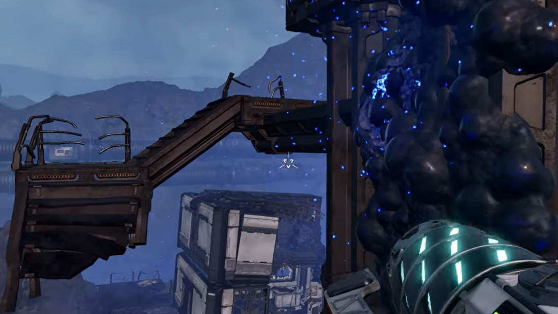 Step 2: Look for an infection‑covered outpost built around a damaged helium extractor near that engine. The area is soaked in blue spores similar to Claywood and Mythic Cry.