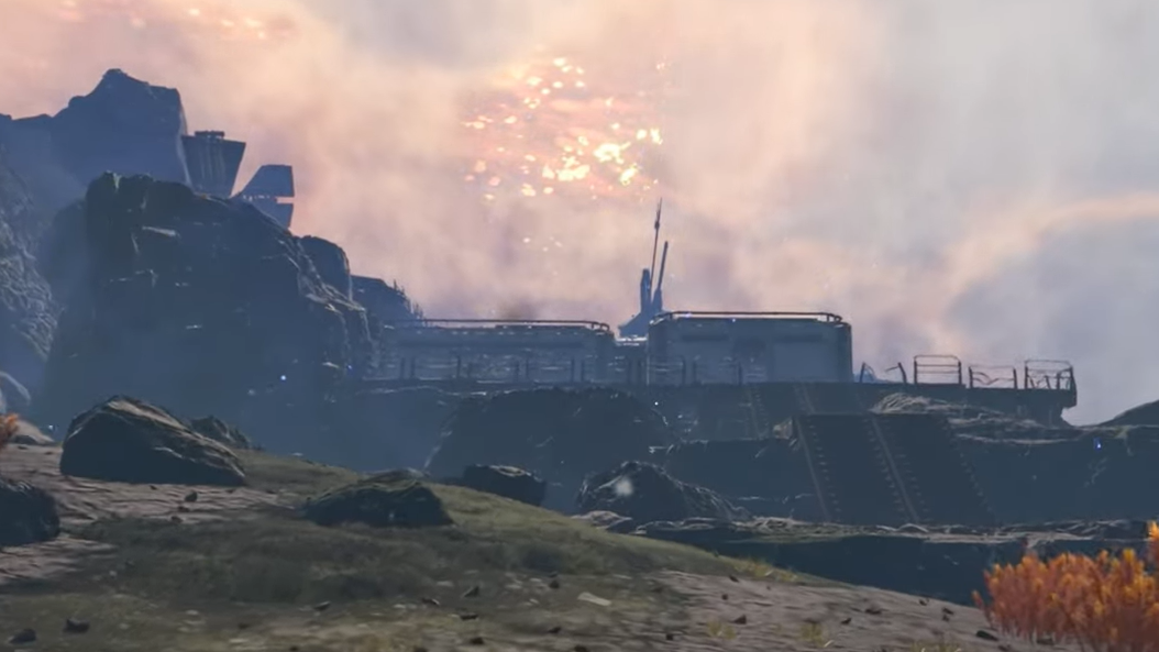 As you climb the final hillside toward the facility, you will see glowing orange bushes or flora patches. These are hazardous environmental elements rather than harmless decoration.