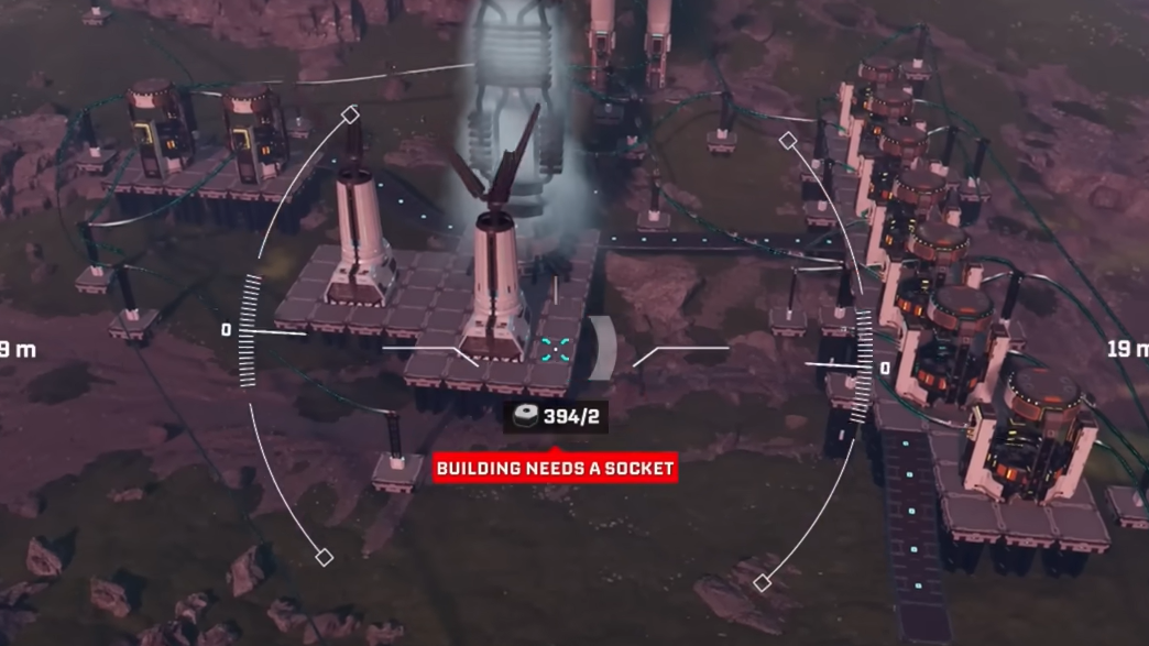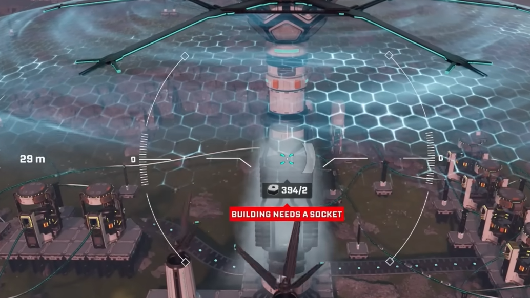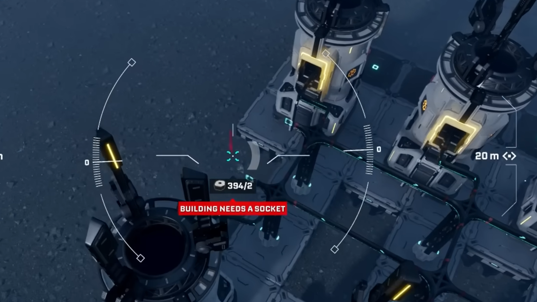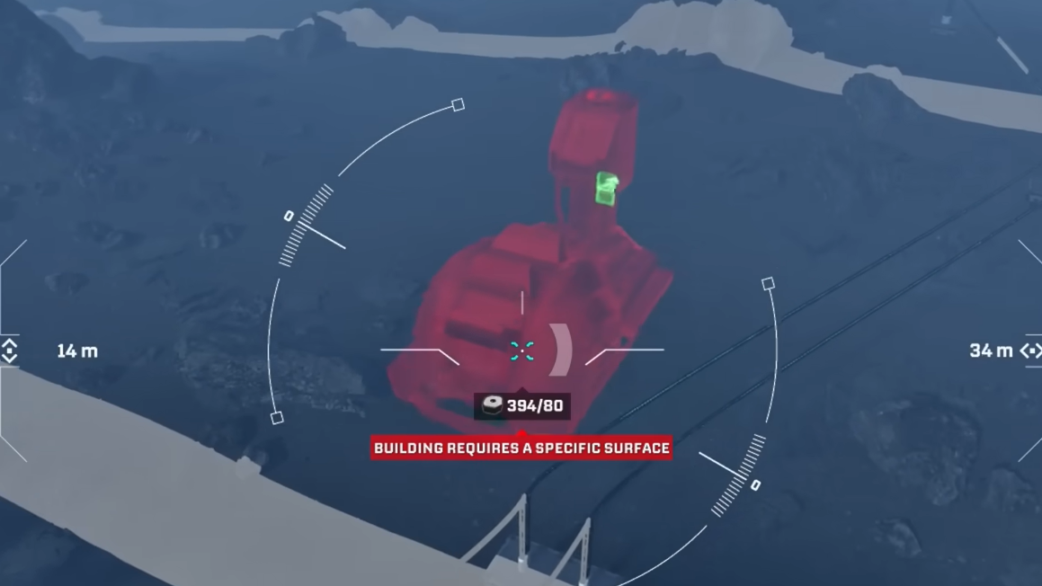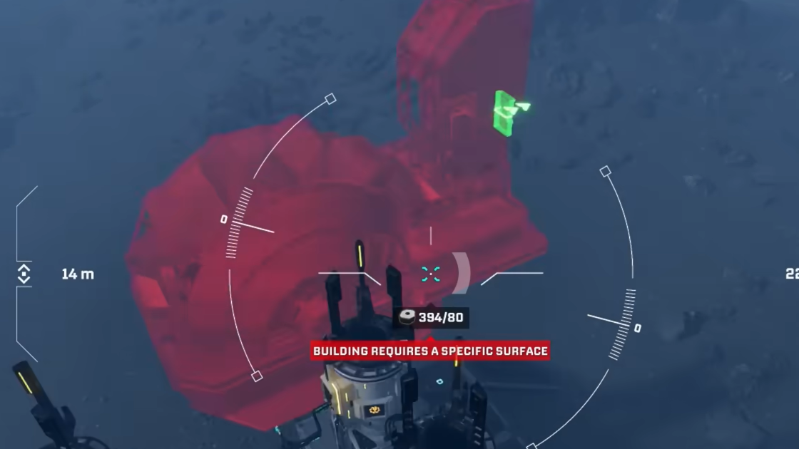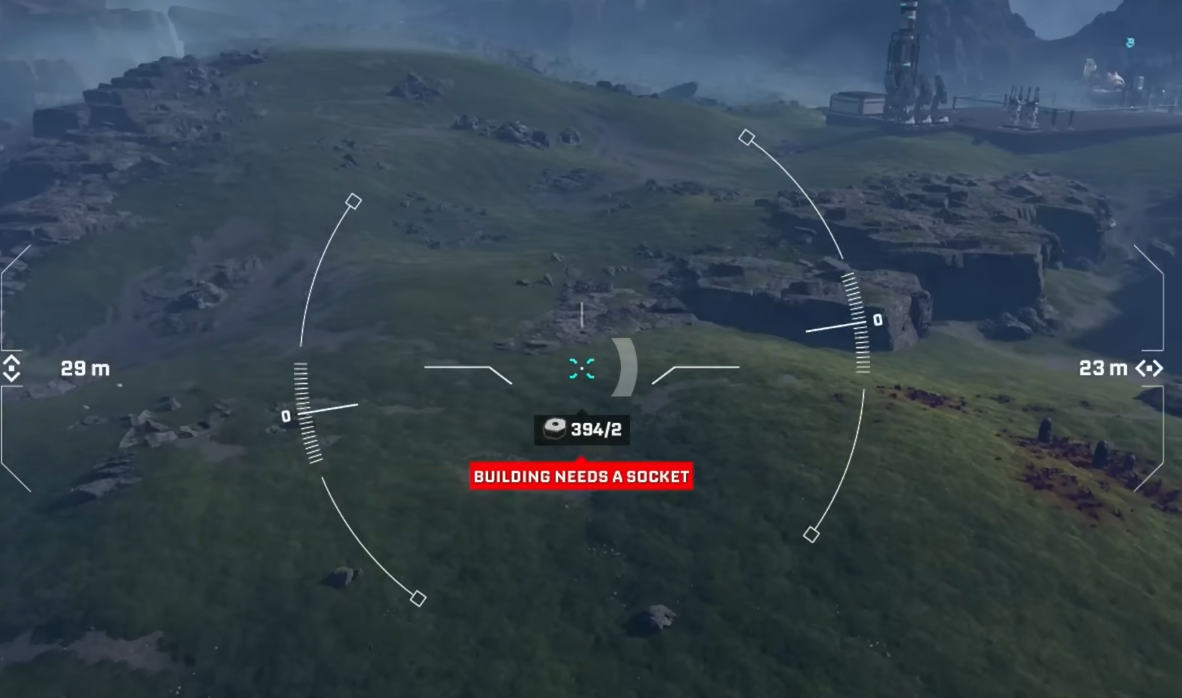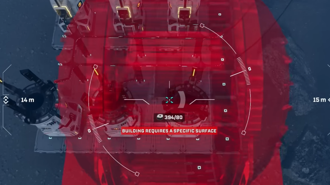 Character tether: The drone cannot stray indefinitely far from where you are standing. If you push too far, a warning appears explaining that you cannot build that far from the original building spot. Fly the drone back closer to your character, reposition your character on foot, or establish another base core in the area you want to expand into.